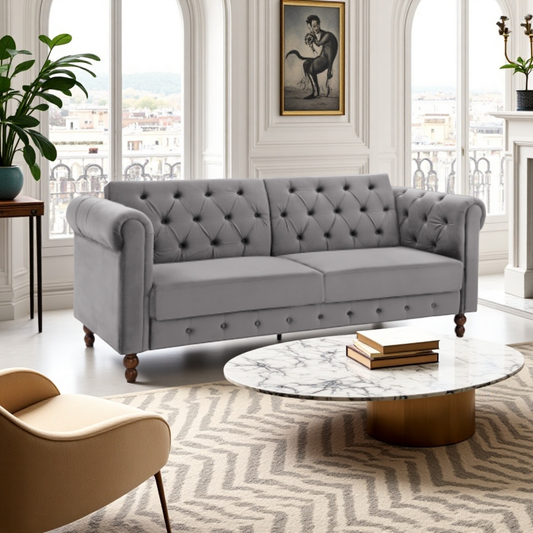 Royal Chesterfield 3 Seat Sofa Bed in Grey Velvet