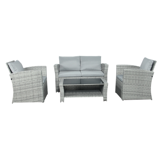 Dunham Grey 4 Seat Rattan Sofa Set with Coffee Table