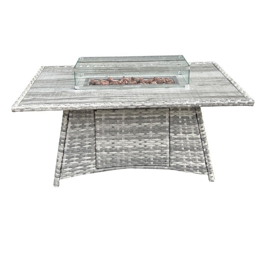 The Maldives Grey Aluminium 9 Seat Corner Gas Firepit Rattan Dining Set