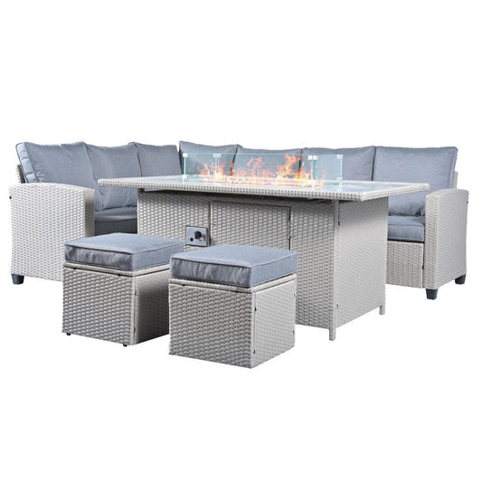 The Conwy 8 Seat Corner Gas Firepit Rattan Dining Set