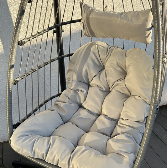 Azura Hanging Egg Chair - Swing Pod Egg Chair - Large with deep Grey Cushions