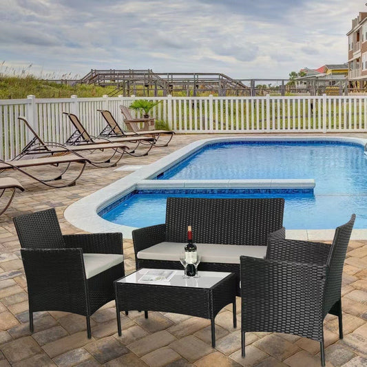 Dunham Grey 4 Seat Rattan Sofa Set with Coffee Table