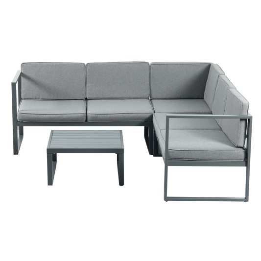 Chester Grey Modern Metal Garden Furniture 5 Seat Corner Sofa and Coffee Table Patio Set