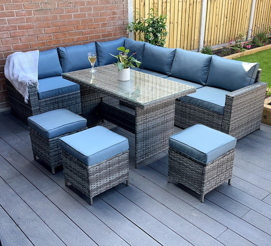 Our extensive selection caters to various tastes and garden sizes. From cosy bistro sets perfect for morning coffee on small patios to sprawling corner dining sets that accommodate family gatherings, we've thought of everything.