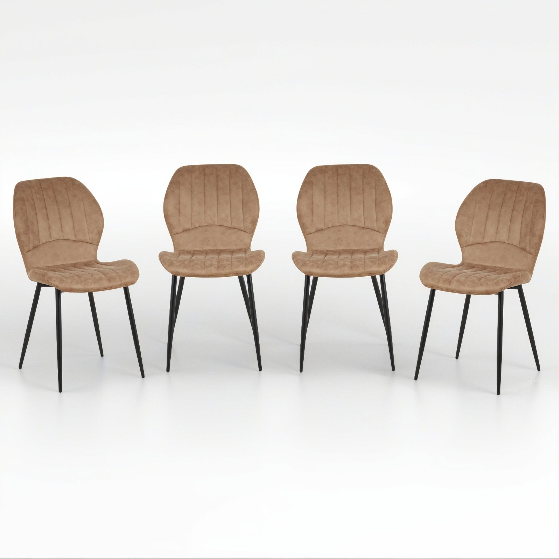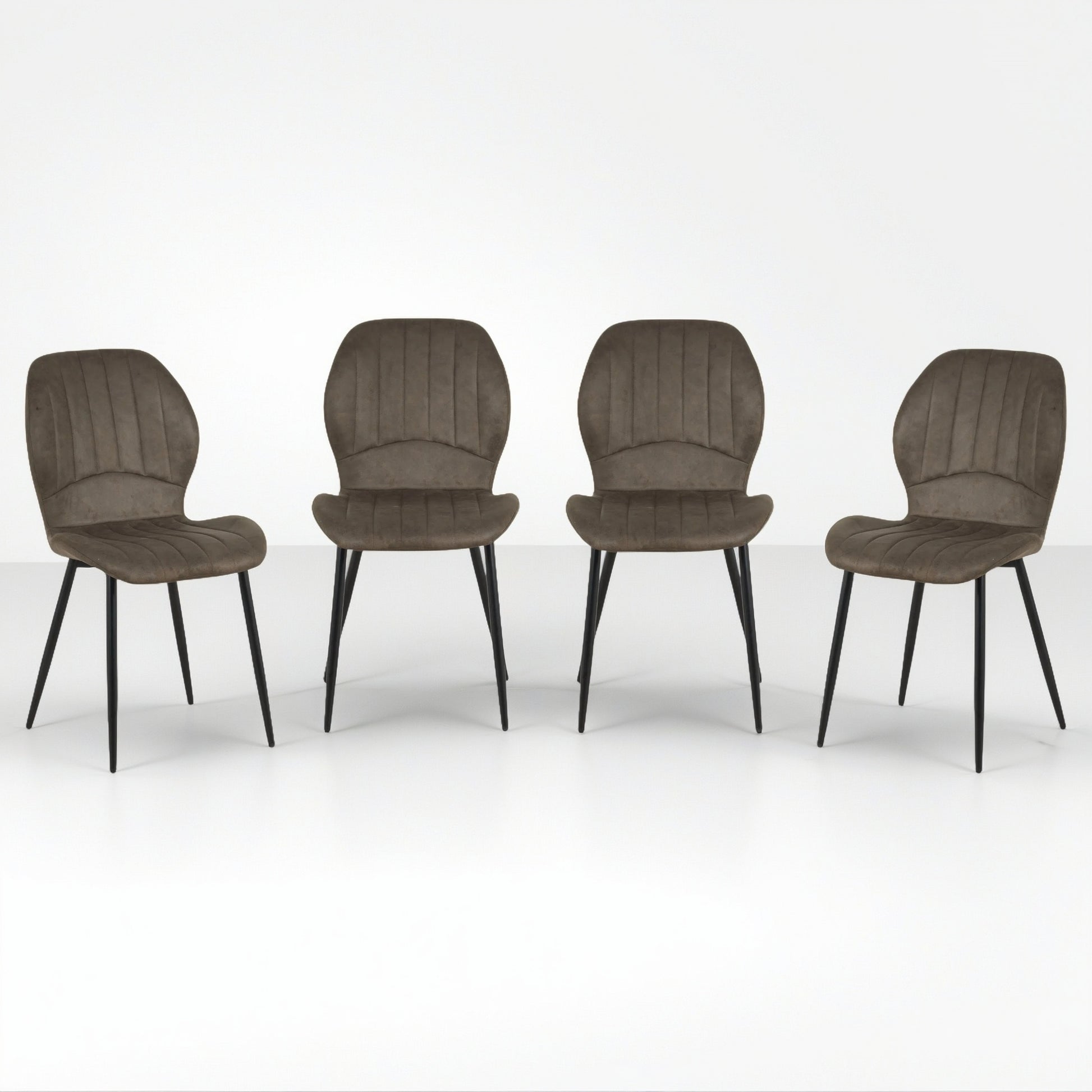 The Jaydn Dining Chairs are made with high-quality distressed vegan leather and stitched with beautiful ergonomic lines, these chairs exude modern elegance while providing ultimate comfort. The sturdy matte black metal legs add a touch of durability.