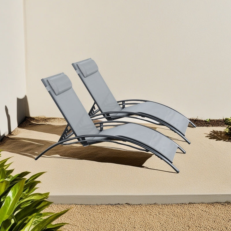 Durable and Stylish: Made from all-weather textilene fabric, these loungers are built to withstand the elements while maintaining a sleek and modern look, adding a touch of elegance to any outdoor space.