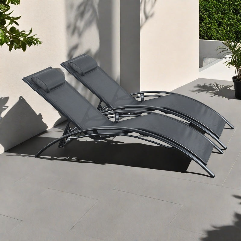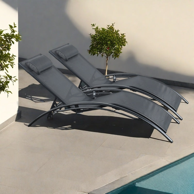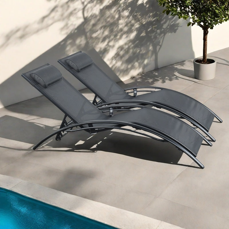 These sun loungers are just what you need for ultimate outdoor relaxation. They’re designed with comfort in mind, featuring adjustable reclining positions so you can kick back just the way you like. The all-weather textilene fabric is a game changer—it’s durable, easy to maintain, and perfect for handling whatever the great outdoors throws its way. Plus, the sleek and stylish design adds a touch of modern elegance to your garden, patio, or poolside.